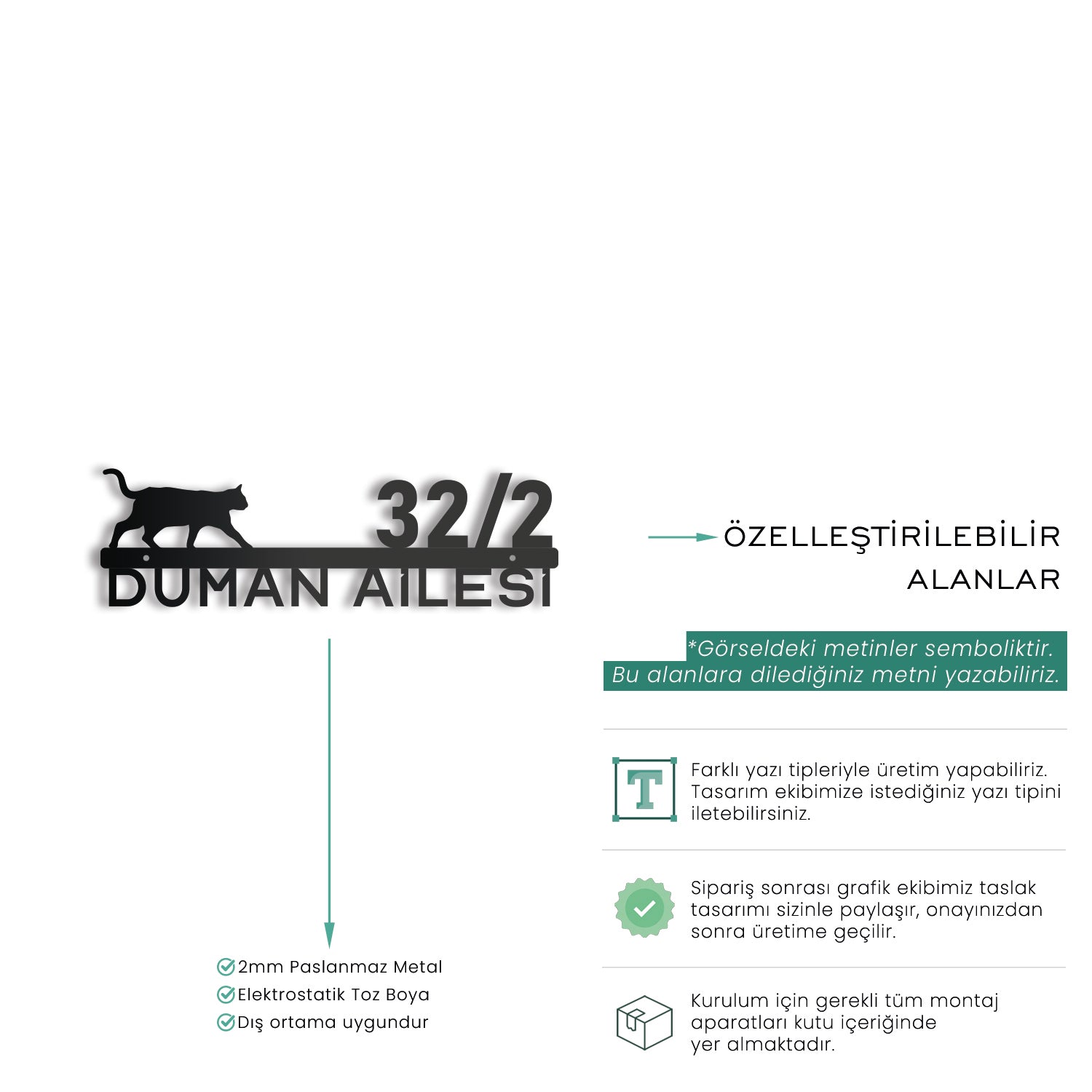 Kedi Figürlü Kişiselleştirilebilir Adres Tabelası