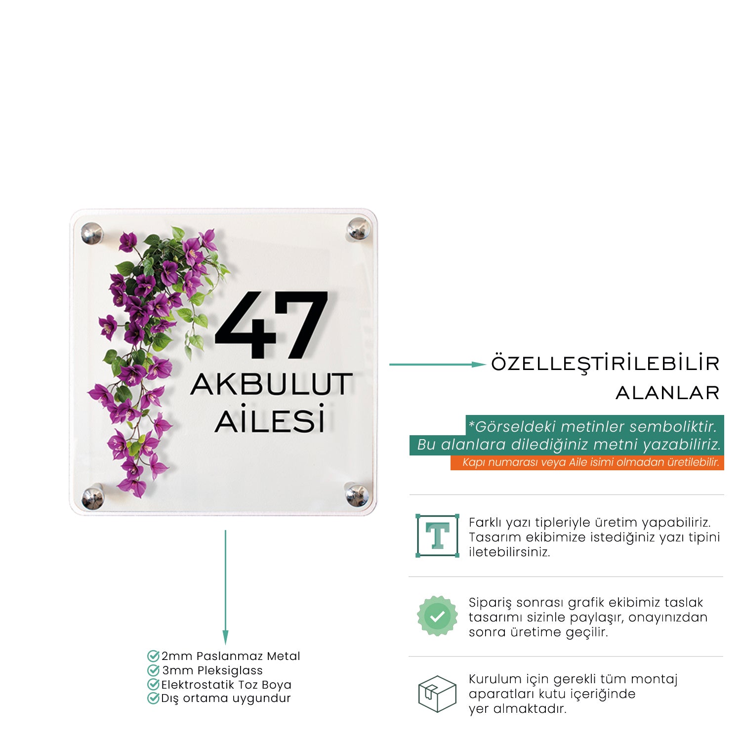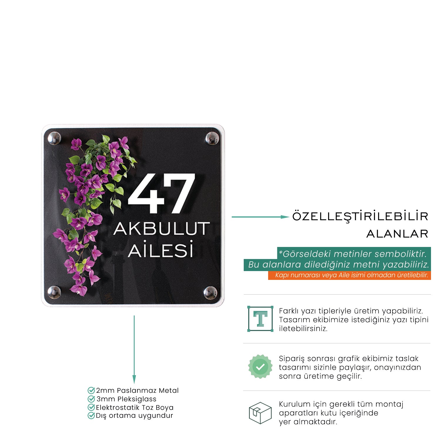 ✔️ Kişiye özel üretim (Kapı numarası + Aile ismi)